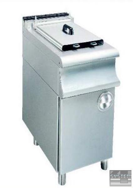 Сделана из сатинированного хромоникелевого листа 18/8 н/с. Проволочные корзины пригодны для процесса жарки, покрыты в соответствии с условиями здравоохранения и оснащены рукояткой для защиты от накаливания,. Маслосборник с зоной охлаждения предназначен для сбора сгоревшего масла и осадков. Снизу расположен шаровой клапан 3/4" для слива масла из резервуара. Отдельное использование резервуаров посредством отдельных кнопок управления. Температура регулируется в пределе 90-185° C посредством термостатического многоуровневого клапана, автоматическое зажигание и растопочный факел, система безопасности прекращает подачу газа в случае отключения газа. Может использоваться СНГ или природный газ, и преобразование происходит без какой-либо модификации. Ограничительный термостат для обеспечения безопасности в случае перекаливания. Газовая горелка трубчатого вида предназначена для использования газа различного типа. Регулируемая опора трубчатого типа и каркасные листы толщиной 2 мм. Дверные рукоятки из н/с.