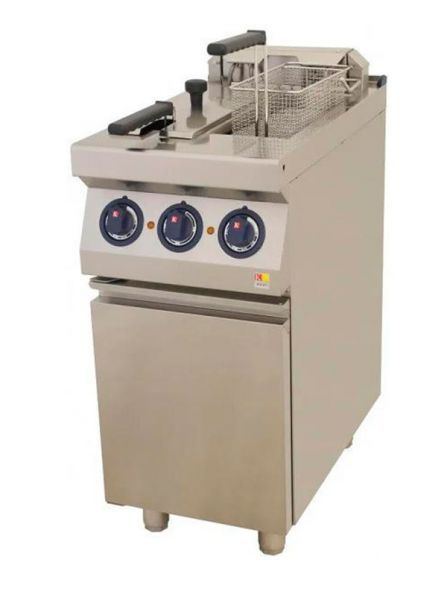 Двопостовая напольная фритюрница состоит из емкостей, которые плотно накрываются крышкой, съемными корзинами и блока управления. Стальная прочная корзина оборудована термоизолированной ручкой. Аппарат легко разбирается для санитарной обработки. Корпус выполнен из высококачественной нержавеющей стали.