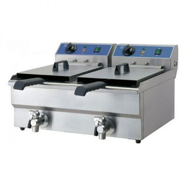 Фритюрницу Liloma FLT10+10 используют для приготовления блюд в растительном масле (фритюре) или горячем жире; готовят мясные, рыбные, сырные, овощные полуфабрикаты, а так же популярное мороженное-фри. Фритюрница проста в использовании и санитарно-гигиенической обработке. Благодаря двум емкостям, в период максимальной загрузки обеспечт бесперебойную выдачу продукции. Имеет защиту кнопок от жира и кран для слива масла.