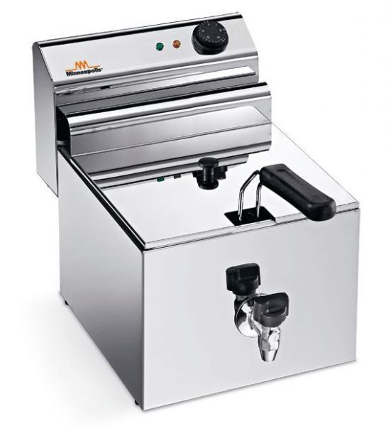 Встроенные индикаторы питания и нагрева позволяют контролировать процесс приготовления. Электронная панель управления находится с фронтальной стороны аппарата. Включается фритюрница терморегулятором, плавная регулировка нагрева от 60 до 190 °С.