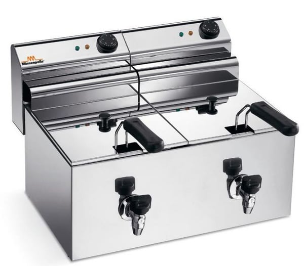 Фритюрница с двумя ваннами - это профессиональное кухонное оборудование, которое позволяет обжаривать разнообразные кулинарные изделия путем погружения их в большой объем горячего масла. В результате приготовления, блюдо приобретает хрустящую золотистую корочку, при этом сохраняет достаточно влажности и получается особый ароматный вкус.