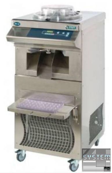 Фризер для твердого мороженого (батч-фризер) с автоматической выгрузкой. Оборудование находит широкое применение в секторе общественного питания. Фризер позволяет видеть сквозь прозрачную крышку стадии замораживания, прост в использовании, работает в соответствии с установленным временным циклом. Позволяет получить оптимальную текстуру и структуру мороженого. Производит классическое твердое мороженное. Обслуживание минимальное. Температура конечного продукта на выходе от -8 до -12. Произведенное мороженое фасуется в специальные контейнеры, а затем размещается в холодильную витрину для хранения и продажи. Шарики мороженого могут подаваться как в вафельном стаканчике, так и отдельно в виде всевозможных десертов. Подойдет для ресторана, летнего кафе, где предлагают своим посетителям десерты по собственной рецептуре.