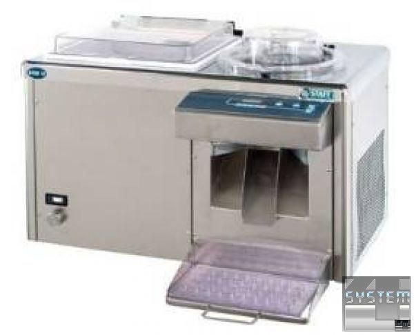 Фризер для твердого мороженого (батч-фризер). Оборудование находит широкое применение в секторе общественного питания. Небольшой размер позволяет легко устанавливать эти машины даже в небольших помещениях. Фризер позволяет видеть сквозь прозрачную крышку стадии замораживания, прост в использовании, работает в соответствии с установленным временным циклом. Позволяет получить оптимальную текстуру и структуру мороженого. Производит классическое твердое мороженное. Обслуживание минимальное. Температура конечного продукта на выходе от -8 до -12. Произведенное мороженое фасуется в специальные контейнеры, а затем размещается в холодильную витрину для хранения и продажи. Шарики мороженого могут подаваться как в вафельном стаканчике, так и отдельно в виде всевозможных десертов. Подойдет для небольшого ресторана, летнего кафе, где предлагают своим посетителям десерты по собственной рецептуре.