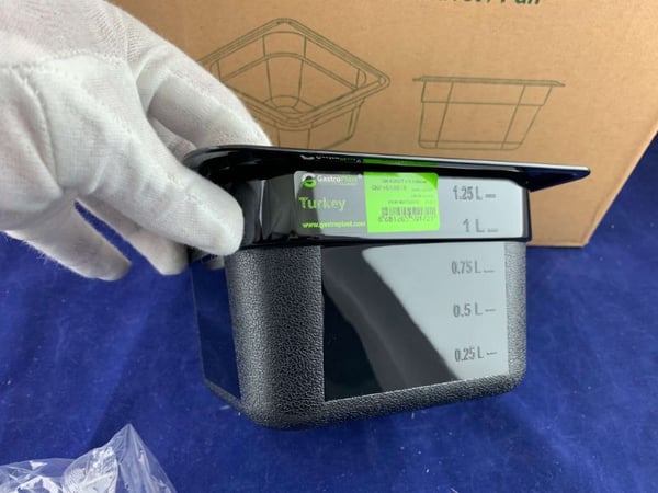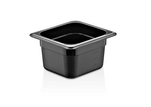 Гастроемкость для хранения пищевых продуктов выполнена из черного поликарбоната, очень стабильная благодаря усиленным углам, а также при правильном использовании устойчива к коррозии.
