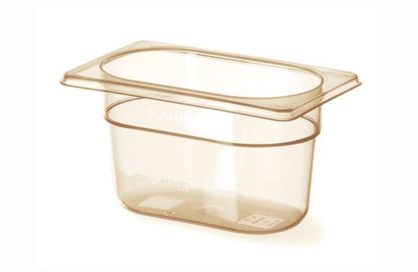 Прозрачная гастроемкость светло-желтого цвета имеет высокую ударостойкость, не впитывает запах и вкус продуктов, устойчива к высоким температурам.