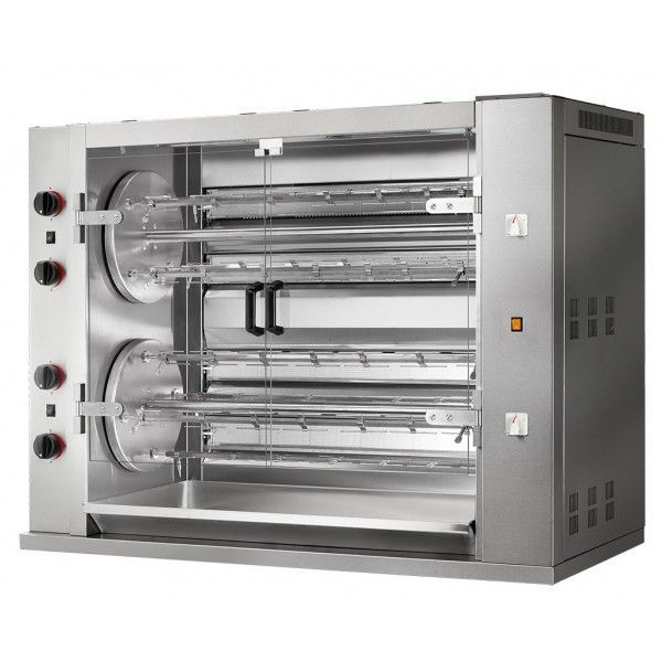 Оснащен 2 системами вращения с 4 вращающимися вертелями
