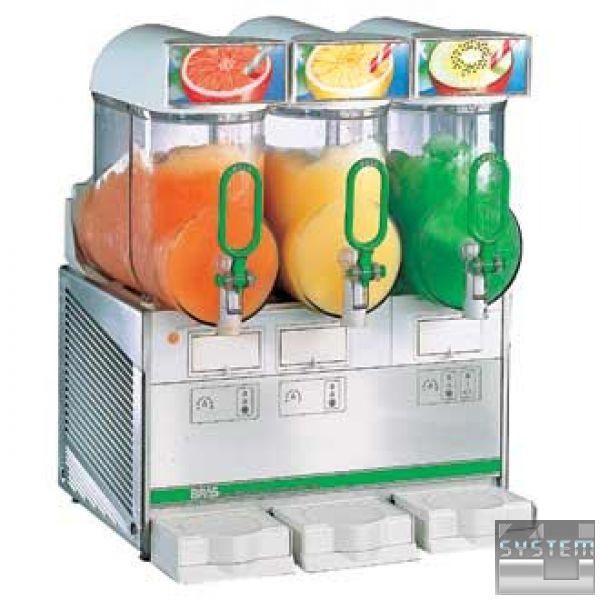 Предназначен для замораживания фруктовых соков, смесей (сорбеты, коктейли, каппучино и др.) в густую снегообразную массу (снег), которую можно пить из толстой трубочки или есть с помощью маленькой ложки. Корпус из нержавеющей стали с ударопрочными пластиковыми вставками. Три прозрачных съемных контейнера из пищевого поликарбоната. Перемешивание осуществляется с помощью лопастного вентилятора. Шумовой уровень менее 70 дБ. Воздушное охлаждение. Защита от перепадов напряжения.