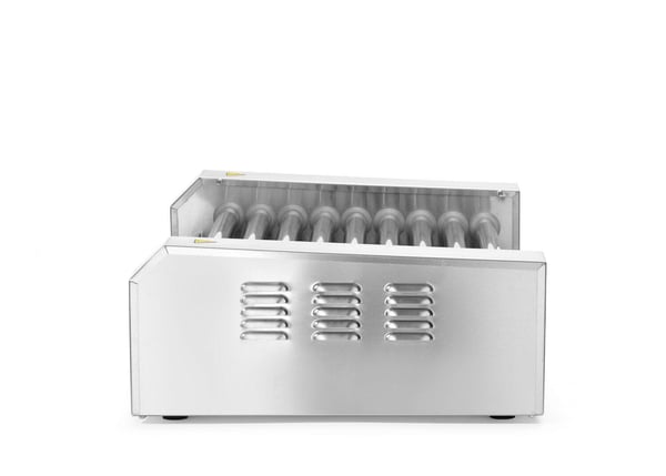 Гриль предназначен для обжаривания сосисок, сарделек, мясных и рыбных батончиков цилиндрической формы, колбасок на вращающихся роликах к аппетитной румяной корочке. Это очень удобное тепловое оборудование для фастфуда, кафе, ресторанов и точек быстрого питания.