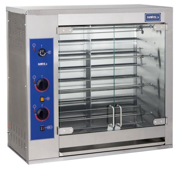 Имеет стеклянные двери, а световые индикаторы позволяют продавцу и покупателю наблюдать за процессом приготовления. Для придания продуктам золотисто-хрустящей корочки используется инфракрасный источник нагрева.