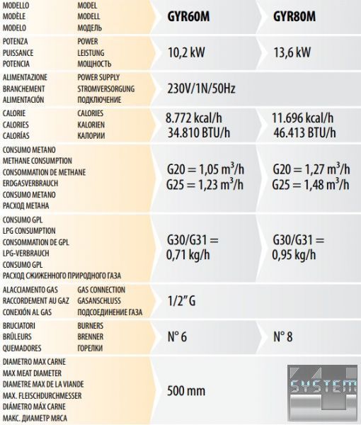 Технические характеристики гриль для шаурмы FIMAR GYR60M: