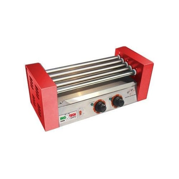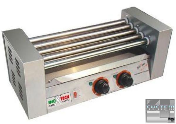 Гриль роликовый Inoxtech HDG 005 служит для обжаривания сосисок, сарделек и колбасок для хот-догов в фаст-фудах. В Роликах находятся ТЭНы, температура которых регулируется переключателем на передней панели. Сосиски помещаются между роликами и равномерно обжариваются благодаря их вращению. Жир стекает с сосисок в поддон под роликами, который легко извлекается для очистки. Гриль прост в обращении, конструкция облегчает санитарно гигиеническую обработку.