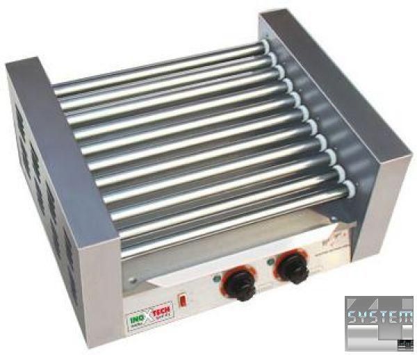 Гриль роликовый Inoxtech HDG 011 служит для обжаривания сосисок, сарделек и колбасок для хот-догов в фаст-фудах. В Роликах находятся ТЭНы, температура которых регулируется переключателем на передней панели. Сосиски помещаются между роликами и равномерно обжариваются благодаря их вращению. Жир стекает с сосисок в поддон под роликами, который легко извлекается для очистки. Гриль прост в обращении, конструкция облегчает санитарно гигиеническую обработку.