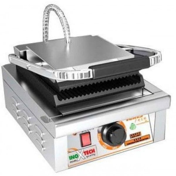 Гриль однопостовой Inoxtech PG 881A незаменимое тепловое оборудование для барбекю и кухни. Имеет ребристую жарочную поверхность и предназначен для жарки мясных, рыбных и овощных блюд без использования посуды. Блюда получаются сочными и сохраняют все витамины. Можно приготовить мясные стейки, вкуснейший гамбургер или овощи на гриле буквально за 10 минут или поджаристые хрустящие королевские креветки, десерт в виде поджаристых кусочков ананаса в сахарной глазури. Готовое блюдо будет вкусным и полезным. Готовит гораздо быстрее, чем на плите или в духовом шкафу, благодаря двустороннему нагреву. Степень поджаривания зависит от давления между верхней и нижней поверхностями. Пружинный механизм обеспечивает легкую работу верхней поверхности. Оборудование легко чистится, долговечное. Имеет низкие эксплуатационные расходы. Простое в содержании и использовании.
