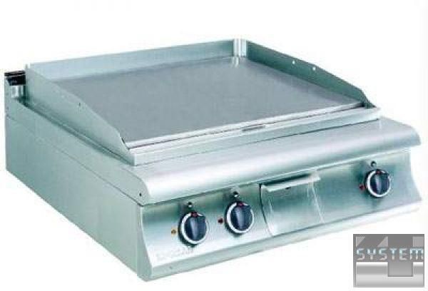Основная часть сделана из сатинированного хромоникелевого листа 18/8 н/с, а внутренние принадлежности – из алитированной стали. Спереди жарочной поверхности находится канал для сбора масла и выпускное отверстие. Собранное с поверхности масло стекает в выдвижной н/с ящик, который легко чистить. Имеются бортики с трех сторон для того, чтобы предотвратить расплескивание жира во время процесса жарки. Все электрические механизмы и приборы соответствуют международным стандартам. Температура регулируется в пределе 50-300 °С посредством многоуровневого термостата и предохранительного термостата 350 ° C . Основной переключатель используется для подачи или прекращения энергии. Пригодна для многофункционального использования со шкафом (с дверьми или без) или на консоли для установок изолированного типа.