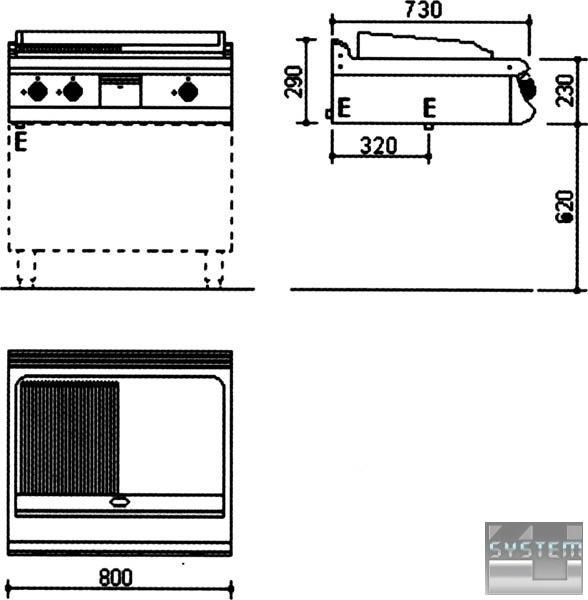 Основная часть сделана из сатинированного хромоникелевого листа 18/8 н/с, а внутренние принадлежности – из алитированной стали. Спереди жарочной поверхности находится канал для сбора масла и выпускное отверстие. Собранное с поверхности масло стекает в выдвижной н/с ящик, который легко чистить. Имеются бортики с трех сторон для того, чтобы предотвратить расплескивание жира во время процесса жарки. Все электрические механизмы и приборы соответствуют международным стандартам. Температура регулируется в пределе 50-300 °С посредством многоуровневого термостата и предохранительного термостата 350 ° C . Основной переключатель используется для подачи или прекращения энергии. Пригодна для многофункционального использования со шкафом (с дверьми или без) или на консоли для установок изолированного типа.