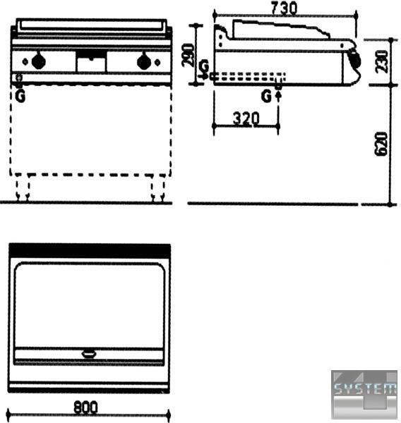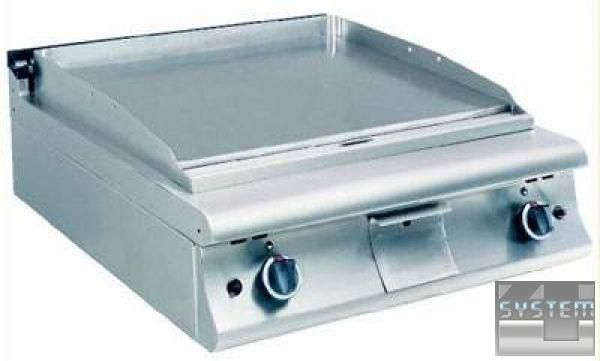 Основная часть сделана из сатинированного хромоникелевого листа 18/8 н/с, а внутренние принадлежности – из алитированной стали. Спереди жарочной поверхности находится канал для сбора масла и выпускное отверстие. Собранное с поверхности масло стекает в выдвижной ящик, который легко чистить. Имеются бортики с трех сторон для того, чтобы предотвратить расплескивание жира во время процесса жарки. Отдельное управление жаровни посредством 2 отдельных ручек. Газовые втулки с растопочным факелом, минимальное/максимальное пламя и термореле; в случае потухания пламени газовый вентиль прекращает подачу газа. Газовые горелки из нержавеющей трубы пригодны для использования различного типа газа. Кнопка автоматического зажигания. Может быть использован СНГ или природный газ, и преобразование происходит без какой-либо модификации. Пригодна для многофункционального использования со шкафом (с дверьми или без) или на консоли для установки изолированного типа.