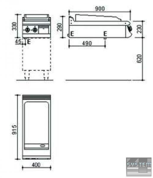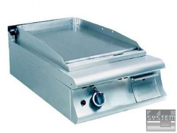 Основная часть сделана из сатинированного хромоникелевого листа 18/8 н/с, а внутренние принадлежности – из алитированного листа. Спереди жарочной поверхности находится канал для сбора масла и выпускное отверстие. Собранное с поверхности масло стекает в выдвижной ящик, который легко чистить. Имеются бортики с трех сторон для того, чтобы предотвратить расплескивание жира во время процесса жарки. Отдельный контроль поверхности посредством двух отдельных ручек управления. Газовые втулки с растопочным факелом, минимально-максимальное пламя и термоэлемент; в случае отключения газа газовый вентиль прекращает подачу газа. Газовые горелки из нержавеющей трубы пригодны для работы с использованием различного типа газа. Кнопка автоматического зажигания. Может использоваться СНГ или природный газ, и преобразование происходит без каких-либо изменений. Пригодна для многофункционального использования со шкафом (с дверьми или без) или на консоли для установок изолированного типа.