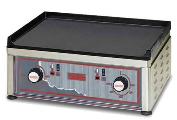 Жарочная поверхность снабжена по периметру бортиками для предотвращения разбрызгивания жира и жиросборником.