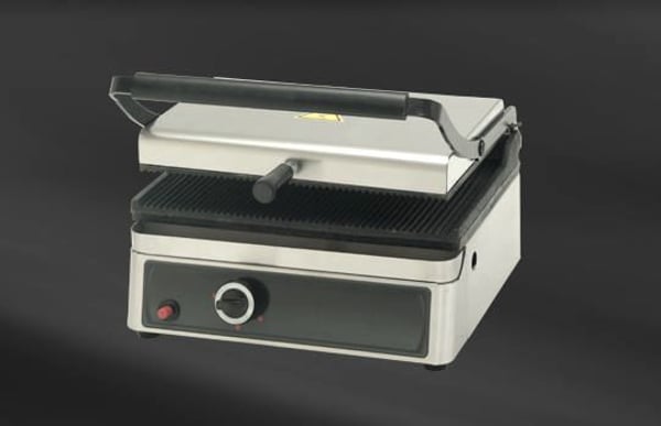 Гриль контактный Baysan оснащен одной парой (верх и низ) рабочих рифлёных поверхностей, изготовленых из чугуна. Корпус - пищевая нержавеющая сталь. Гриль контактный имеет специальную емкость для слива масла, которая находится на передней панели.