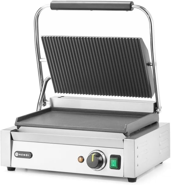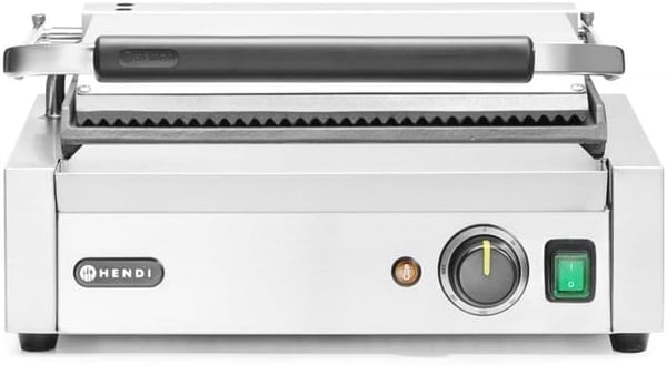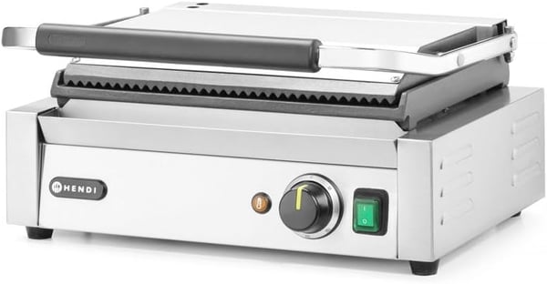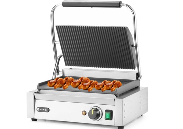 Электрический однопостовый контактный гриль используют для приготовления и жарки широкого спектра продуктов: жарки мясных, рыбных и овощных блюд без использования посуды. Эти аппараты также называют panini, в переводе с итальянского означает "горячий бутерброд". Принцип работы прижимного гриля состоит в том, что обжарка продукта происходит одновременно с двух сторон, что вдвое сокращает время приготовления. Рекомендован для оснащения небольших закусочных, снек-баров, заведений фаст-фуда, где быстро происходит разогрев и обжаривание гамбургеров, сосисок, тостов, а также можно использовать для подогрева донер-кебабов, шаурмы, панини. В обе части гриля встроены плотно прилегающие к продукту тепловые элементы, поэтому процесс приготовления протекает очень быстро.