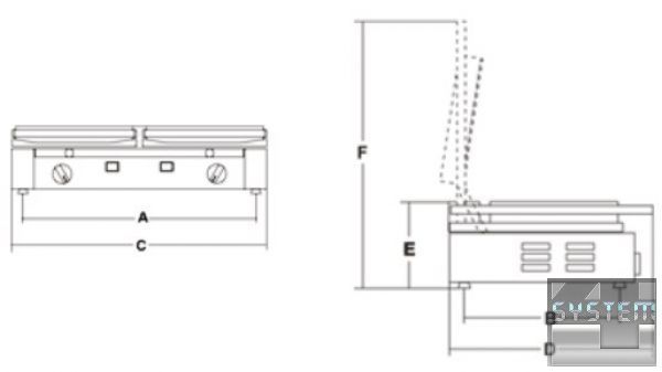 - 2 регулируемых термостата до 300 °C., которые позволяют использовать отдельно две половины гриля.