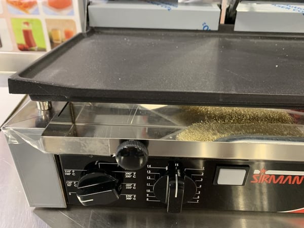 Корпус оборудования изготовлен из высококачественной нержавеющей стали. Ручки электрического гриля выполнены из термостойкого материала. Гладкая поверхность, съемный поддон для сбора лишнего жира. Чистить гриль очень легко с помощью пищевой металлической щетки.
