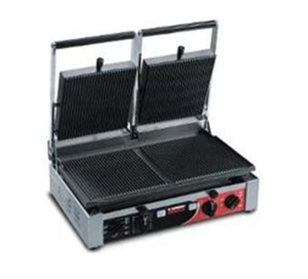 Контактный гриль (прижимной гриль) представляет собой универсальное тепловое электрическое оборудование для фаст-фуд,точек быстрого питания, кафе и фуд-кортов.Такое тепловое оборудование как, контактный гриль, применяется для обжарки и разогрева мяса и рыбы,хот-догов,шаурмы. Профессиональные контактные грили (прижимные грили), благодаря регулируемому термостату температуры 0÷300 °C, позволяют быстро приготовить сэндвичи различной сложной начинки, горячие бутерброды, овощи-гриль,поджарить тосты и сосиски хот-дог.