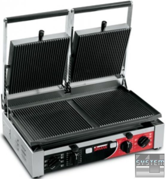 - 2 регулируемых термостата до 300 °C., которые позволяют использовать отдельно две половины гриля.