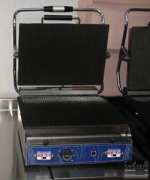 Давление верхней рабочей поверхности регулируется прижимной пружиной, что обеспечивает адаптацию к различной толщине приготовляемого продукта.