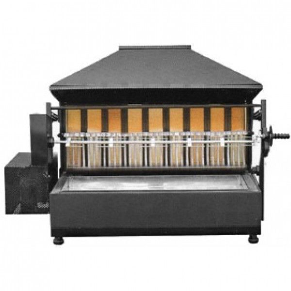 Расстояние вертеля по отношению к огню регулируется