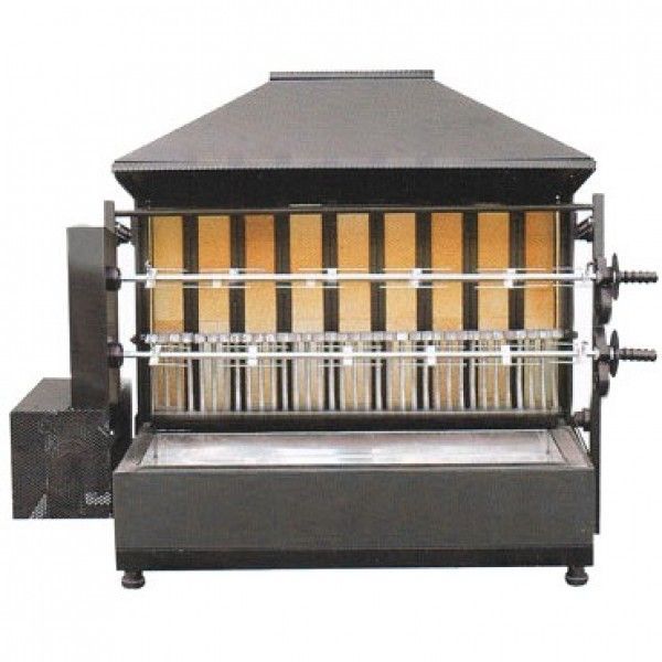 Расстояние вертеля по отношению к огню регулируется