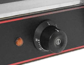 Гриль оснащен регулятором температуры, с его помощью можно выбрать оптимальный режим приготовления любого блюда.