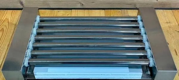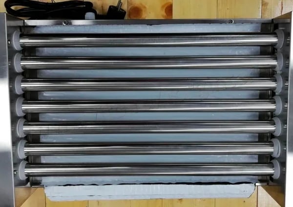 Ролики гриля могут быть с антрипригарным и хромированным покрытием, которые нагреваются изнутри своим ТЭНом, что обеспечивает равномерную температуру по всей нагревающей поверхности. Изделия, уложенные между двумя роликами, поджариваются равномерно со всех сторон благодаря непрерывному вращению.