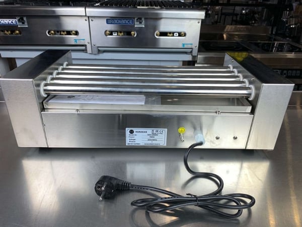 Оборудование имеет 5 вращающихся роликов, которые выполнены из высококачественной нержавеющей стали. Высокоэффективный нагревательный элемент мощностью 1кВт обеспечивает быстрое приготовление продуктов, а встроенный терморегулятор с диапозоном от 50 до 300°С позволяет добиться оптимальной степени готовности.