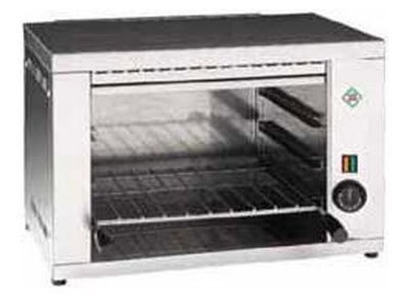 Оборудование является универсальным, поскольку выполняет функции жарочного шкафа, микроволновой и обычной печи, при этом не занимая много места. Компактный гриль можно установить даже на баре. Корпус гриля изготовлен из нержавеющей стали. Оборудование простое в использовании и предназначено для интенсивной эксплуатации. Благодаря гриля вы получите любой запеченый деликатес.