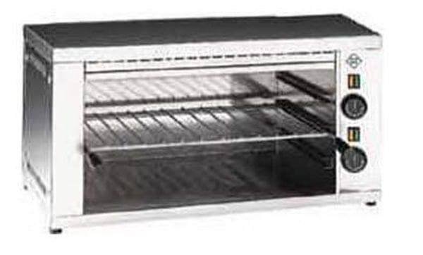 Оборудование является универсальным, поскольку выполняет функции жарочного шкафа, микроволновой и обычной печи, при этом не занимая много места. Компактный гриль можно установить даже на баре. Корпус гриля изготовлен из нержавеющей стали. Оборудование простое в использовании и предназначено для интенсивной эксплуатации. Благодаря гриля вы получите любой запеченый деликатес.