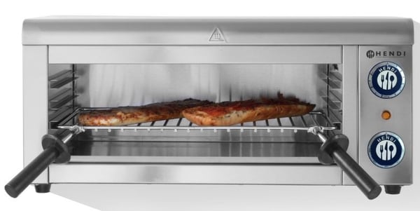 Гриль саламандра произведен в настольном варианте и оснащена антискользящими ножками - это практично и гигиенично в использовании, а главное соответствует нормам СЭС.