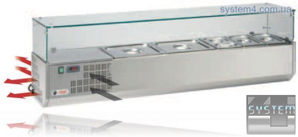 Настольная барная витрина предназначена для кратковременного хранения и демонстрации, предварительно охлажденных продуктов (салатов, закусок, гарниров) в магазинах, кафе, барах, ресторанах и суши-барах. Наиболее широко применяется в пиццериях для хранения топпинга (начинки для пиццы).