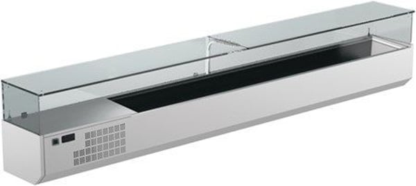 Настольная барная витрина предназначена для кратковременного хранения и демонстрации, предварительно охлажденных продуктов (салатов, закусок, гарниров) в магазинах, кафе, барах, ресторанах и суши-барах. Наиболее широко применяется в пиццериях для хранения топпинга (начинки для пиццы).