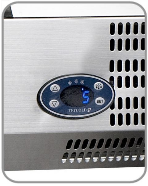 Электронный термостат топпинг витрины позволяет установить с высокой точностью значения температуры, а также получить информацию о состоянии работы компрессора и об аварийных отказах системы охлаждения.