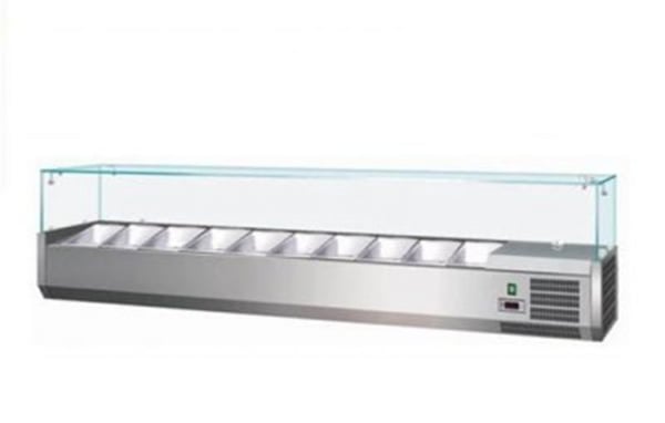Настольная холодильная витрина DGD VR4180VD, с прямым стеклом, в которой можно разместить семь гастроемкостей GN 1/4-150. Рабочая полезная температура от 0 до +10º С.