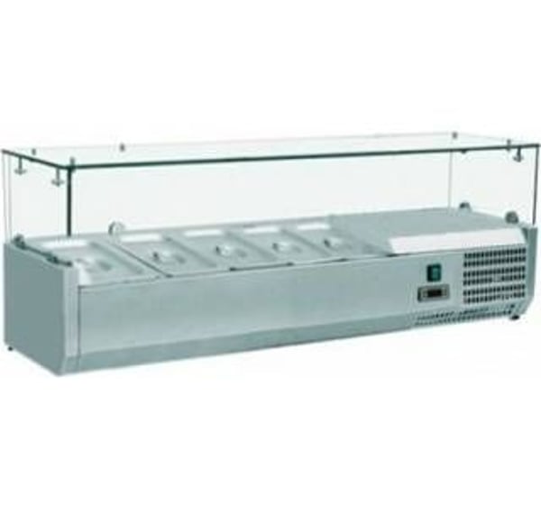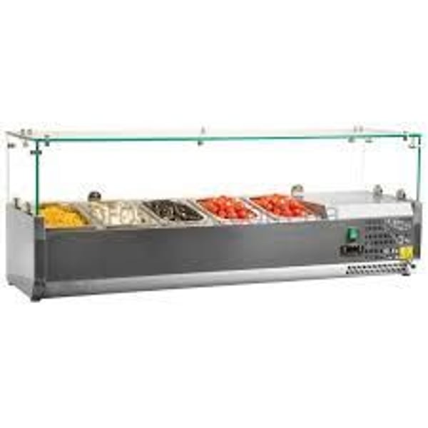Холодильная витрина для хранения начинки предназначены для кратковременного хранения и демонстрации,предварительно охлажденных продуктов (заготовок, салатов, закусок, гарниров) в магазинах, кафе, барах, ресторанах, суши-барах. Чаще всего применяются в пиццериях для хранения начинки для пиццы. Эту витрину для топпинга удобно установить прямо на холодильный стол для пиццы. Вместимость холодильной витрины - 5 гастроемкостей GN 1/4 глубиной. С тыльной стороны удобный доступ к выставляемым блюдам. Витрина выполнена из нержавеющей стали с алюминиевым анодированным профилем, без раздвижной стеклянной дверки. Температурный режим +2...+8°C, статическое охлаждение, защитное стекло.