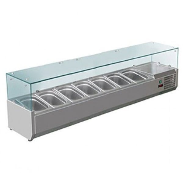 Настольная холодильная витрина для топпинга используется для предварительного охлаждения, демонстрации и кратковременного хранения заготовок, салатов, закусок, гарниров в ресторанах, магазинах, барах, суши-барах. Наиболее широко применяются в пиццериях для хранения топпинга - начинки для пиццы.