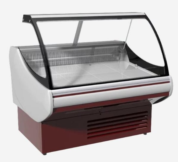 Витрина оборудована фронтальным гнутым стеклом с отличной обзорностью.
