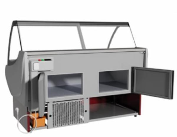 Витрина оснащена вместительным охлаждающим боксом для хранения продуктов и энергосберегающей LED подсветкой. Дверцы в бокс для хранения термоизолированы, по внутреннему контуру эластичный уплотнитель с магнитными вставками.