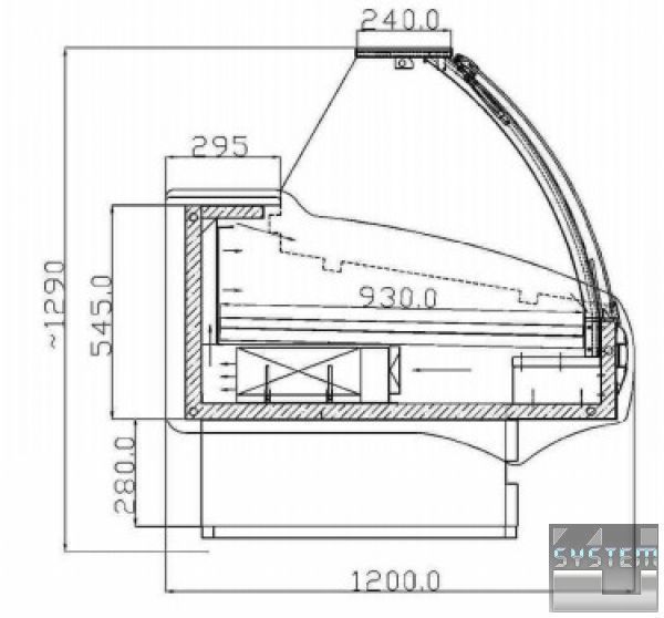 Технические характеристики холодильной витрины Mawi WCHLUX 2,0/1.2/N: