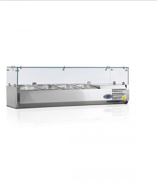 Настольные барные витрины - предназначены для кратковременного хранения и демонстрации, предварительно охлажденных продуктов (салатов, закусок, гарниров) в магазинах, кафе, барах, ресторанах, суши-барах. Наиболее широко применяются в пиццериях для хранения топпинга (начинки для пиццы).Витрины выполнены из нержавеющей стали. Статическое охлаждение. Защитное стекло.