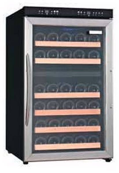 Данная модель вмещает в себя до 34 бутылок. Оборудование оснащено энергосберегающим светодиодным освещением LED. Контроль температуры, с двумя зонами, которые регулируются отдельно. Полки деревянные и легко вынимаются. Присутствует рециркуляция холодного воздуха. Обрамление и ручка выполнена из нержавеющей стали.
