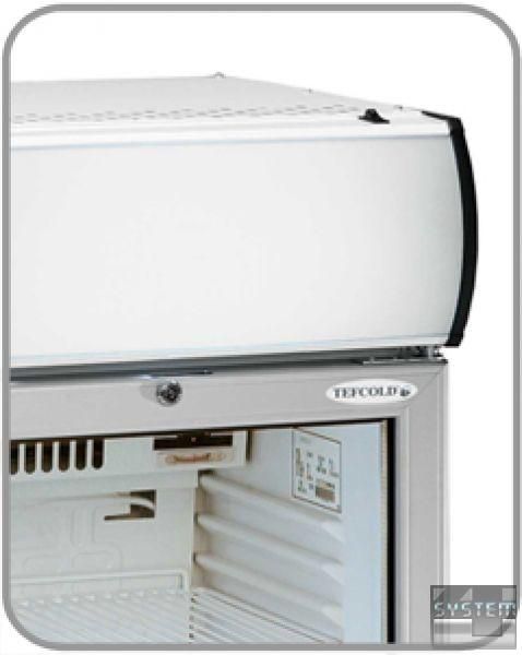 Застекленная конструкция двери и внутреннее освещение камеры выгодно предоставит выкладку товара и тем самым наглядно позволит определить место расположение нужного продукта, не открывая дверцу - это позволяет сохранить внутренний температурный режим холодильной камеры Tefcold.