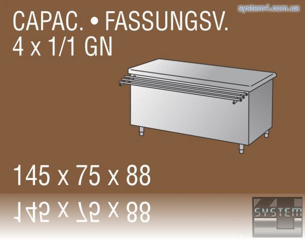 • охлаждаемые емкости, рабочая температура +2...+12 °C, высота 200 мм, вмещает около 130 бутылок 0,5л. в 4 х 1/1 GN, и около 200 в 6 х 1/1 GN;